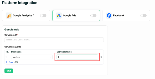 Step 4. Enter the corresponding Conversion Label from Google Ads.