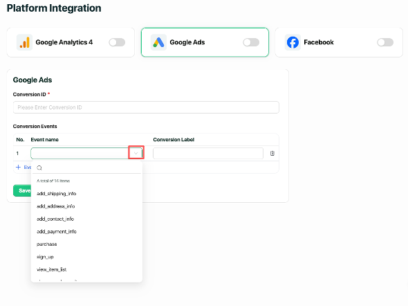 Step 6. After configuring all Conversion Events, click “Save” to apply the settings.