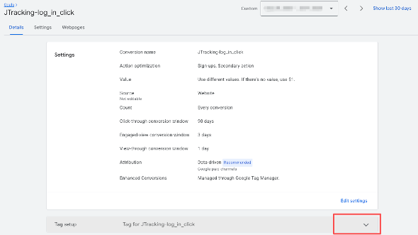 Step 2. In the Tag setup section, click the arrow icon to expand the details.