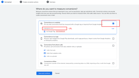 Step 2. Select “Conversions on a website” and enter your website URL.
