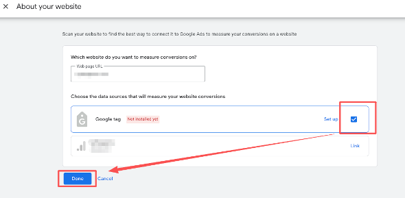 If a new window appears, click “Scan”, select “Google tag”, then click “Done.”